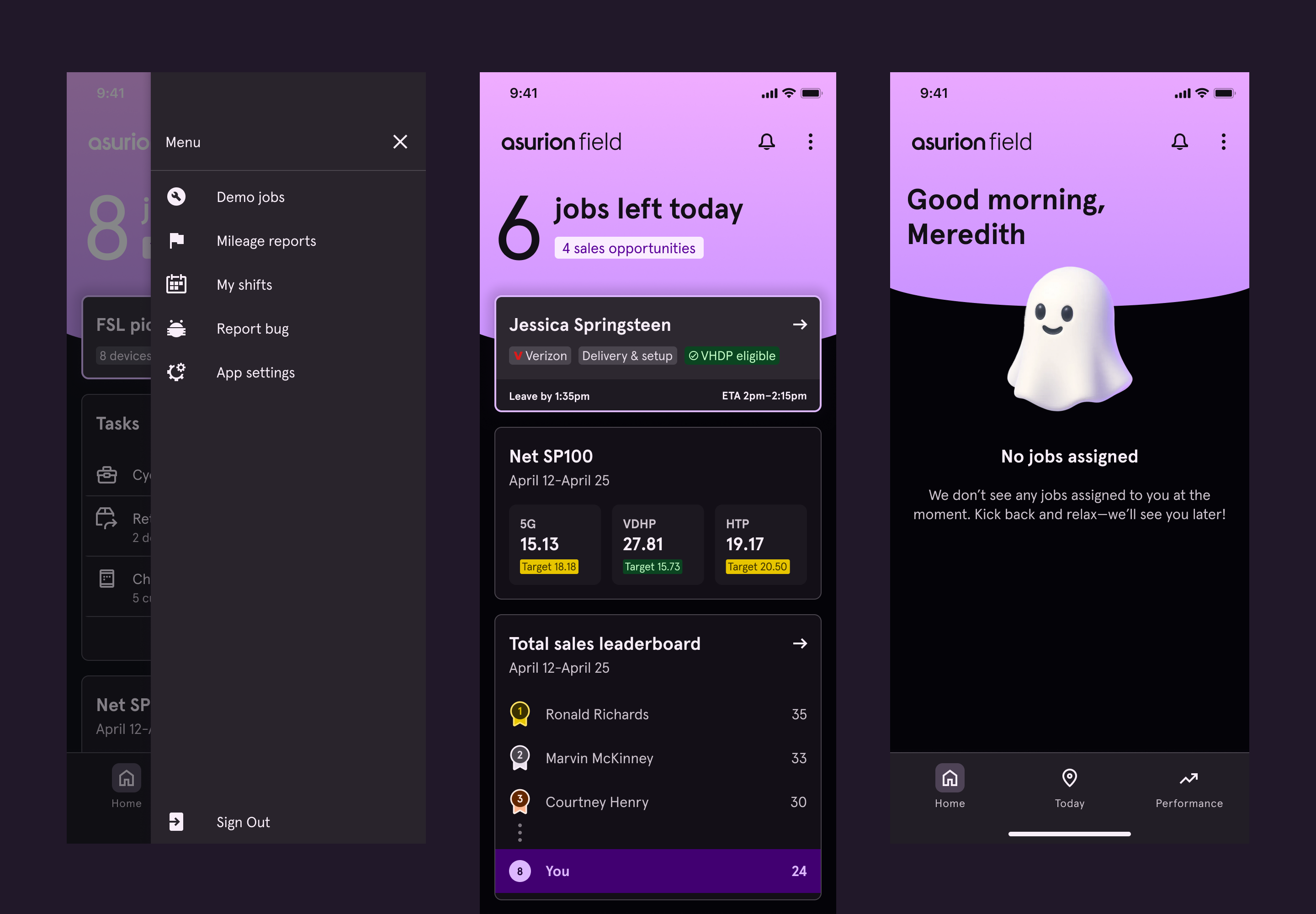The Asurion Field app had outgrown its 2019 MVP foundation. Its architecture buried features and blocked the business from quickly scaling new capabilities. 1,500 experts relied on it daily to complete ~1.2M same-day delivery jobs per year — yet adoption of new features was low and tech debt made iteration increasingly costly and slow.
