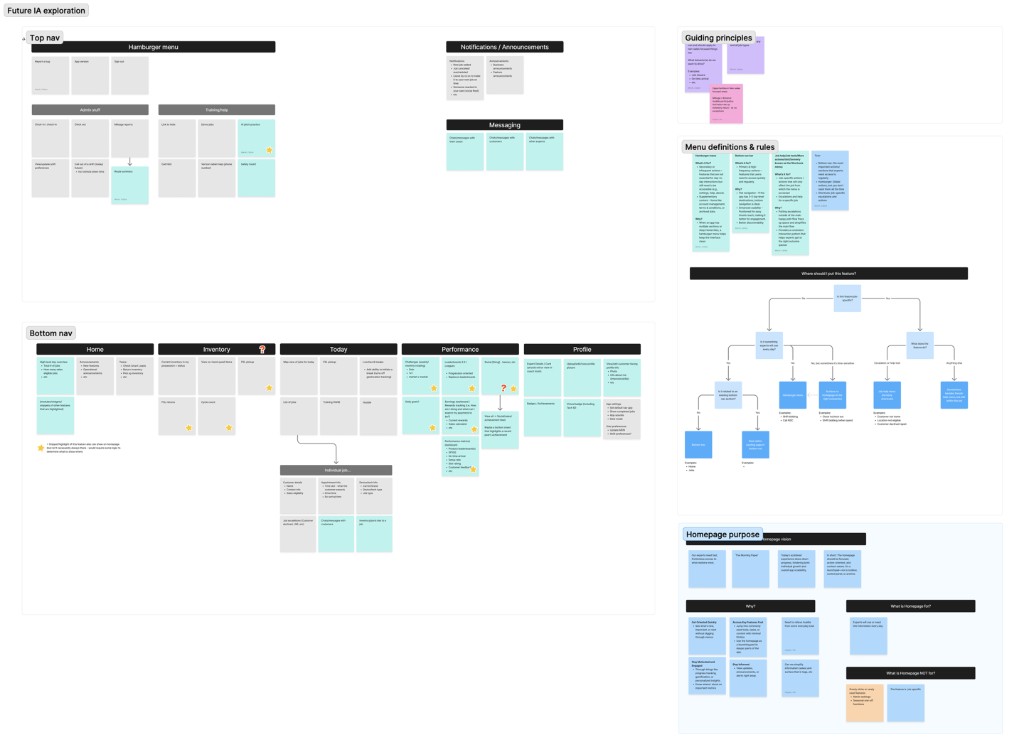 I drove the core IA decisions while player-coaching two senior designers — one focused on the Homepage and feed evolution, the other on sales and dashboard integration. Early in the process, I facilitated a cross-functional workshop to align on shared experience principles across design, product, and engineering. That alignment prevented us from solving for features in isolation.