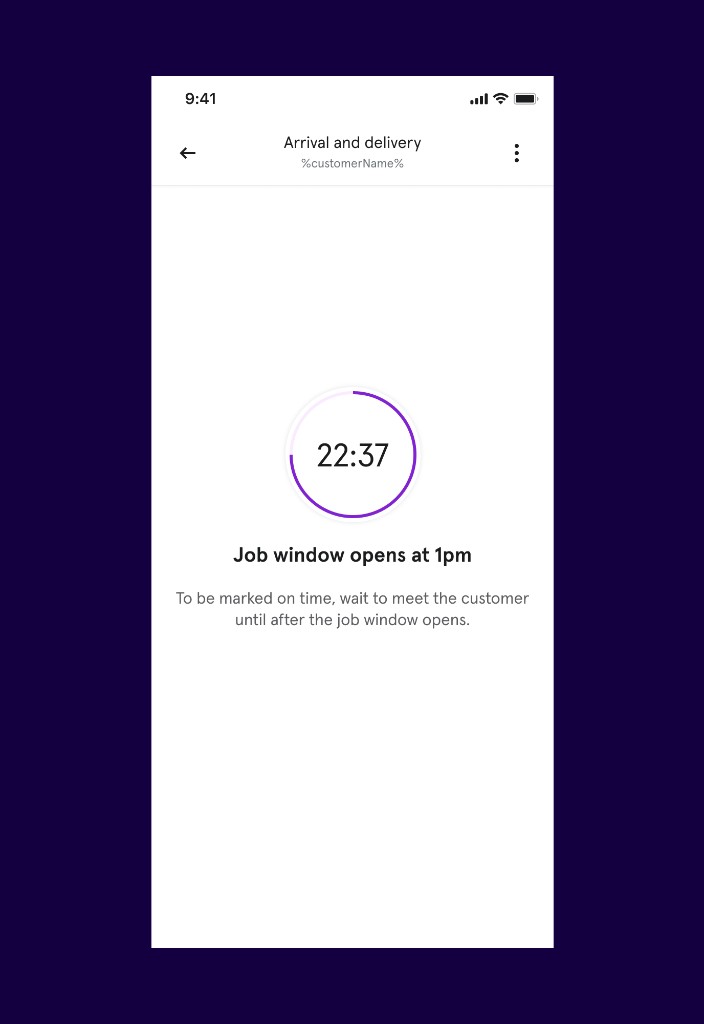 Early in the project, our some stakeholders came to us with a specific proposal: introduce a screen that would block experts from continuing a job if they arrived too early, outside the appointment window.