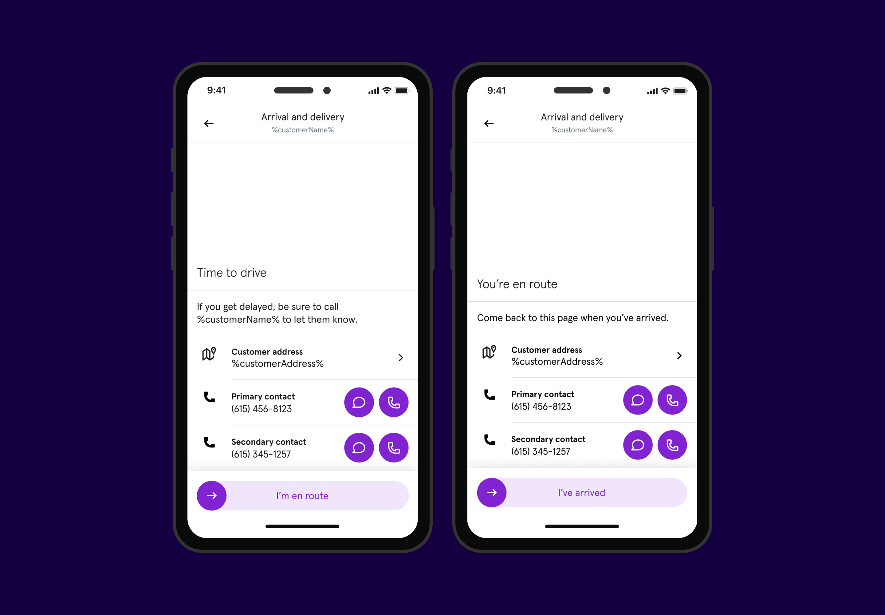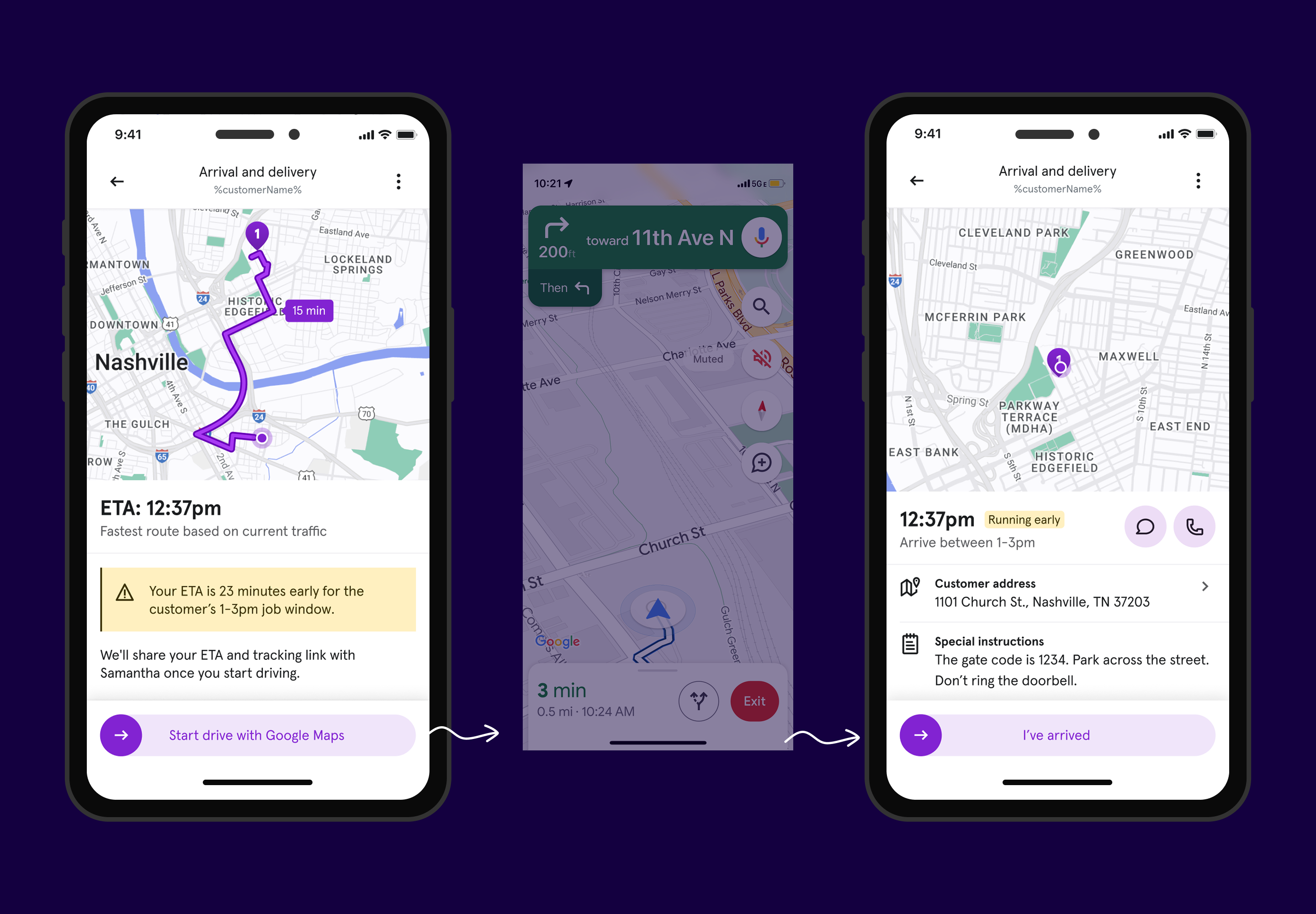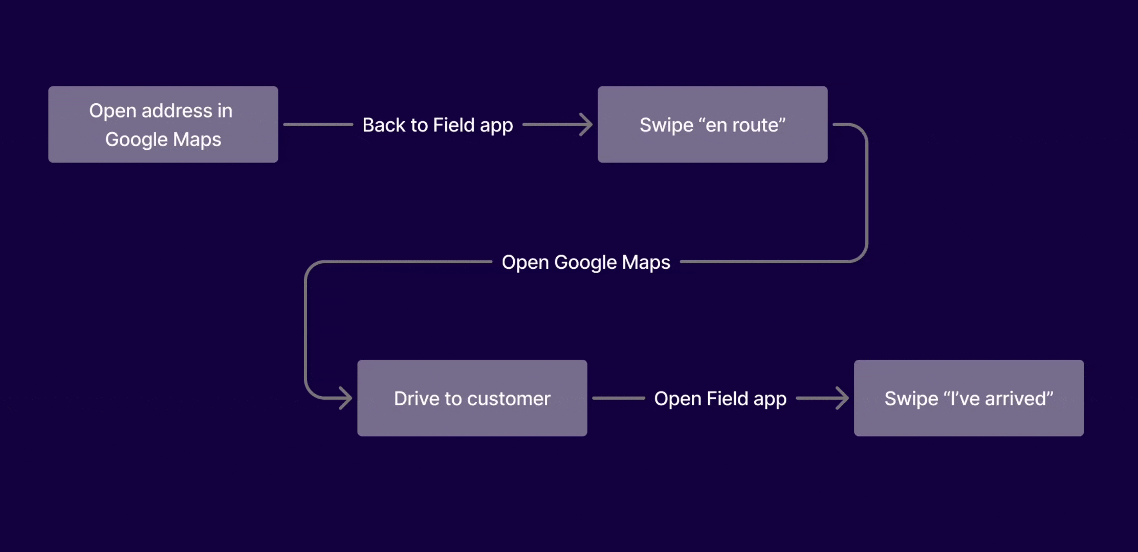 We also changed the primary action so launching navigation happened after marking "en route," keeping experts in Field long enough to trigger live tracking and customer notifications.